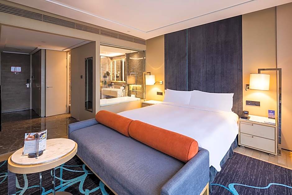King Guest Room High Floor is 409 square feet and includes desk, satellite tv , hairdryer, tea and coffee making facilities , safe, and bathrobes.